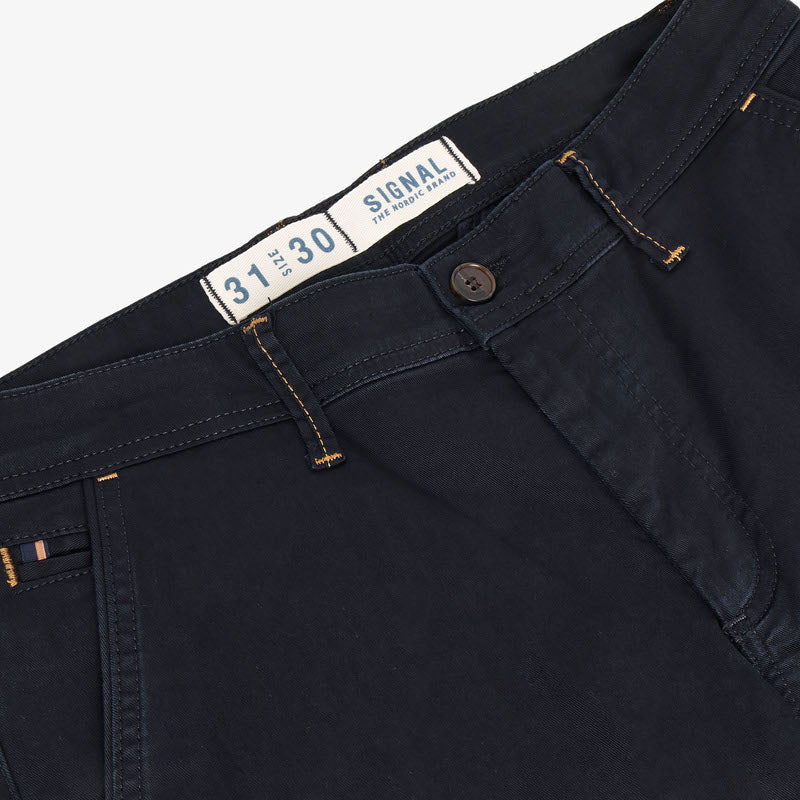 Stay cozy and stylish with our VictorSI Chino - Deep Marine Pants. Made from 97% organic cotton and 3% elastane, these pants offer a perfect blend of comfort and flexibility. Embrace sustainability and fashion with our Deep Marine design that exudes sophistication for any occasion.